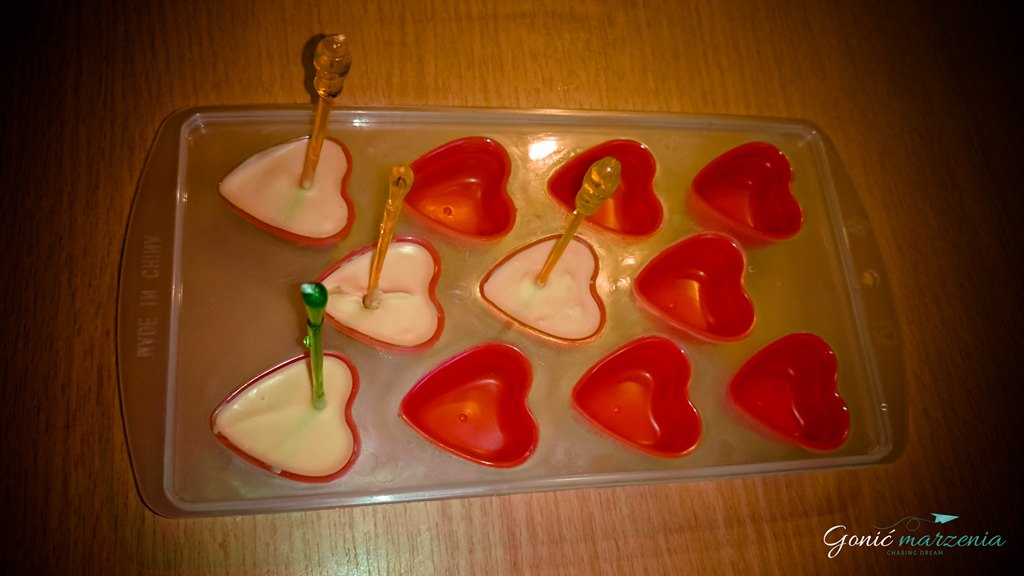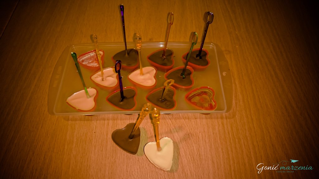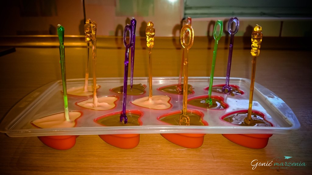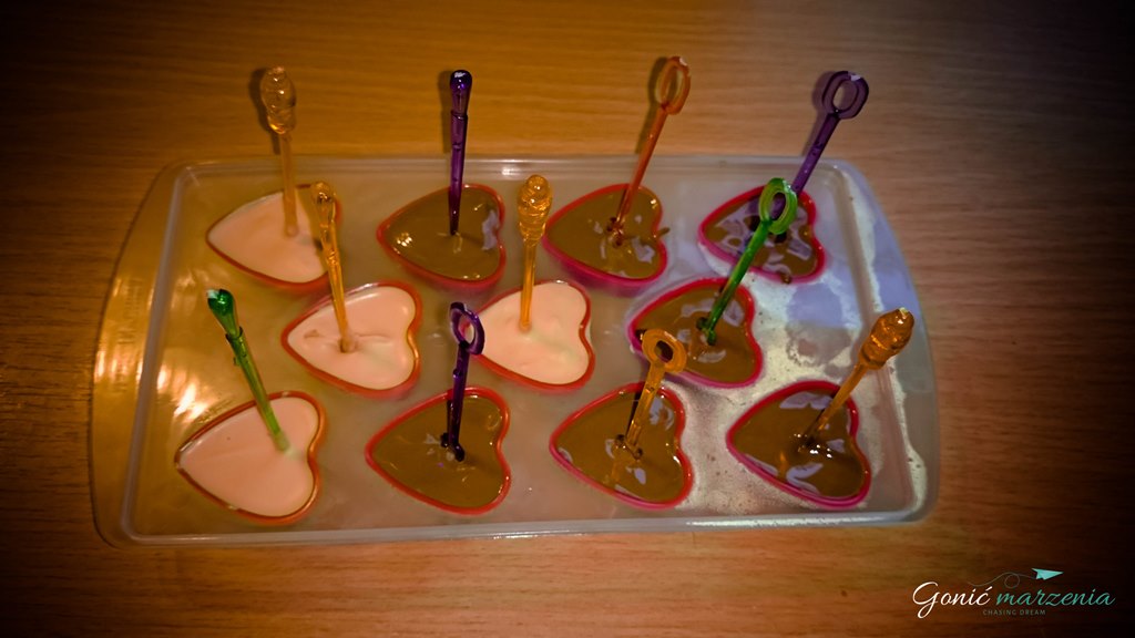 Powtarzasz czynność z drugą tabliczką czekolady i wlewasz do pozostałych foremek 🙂